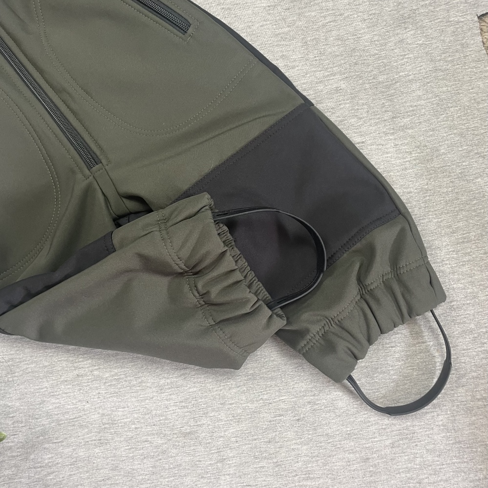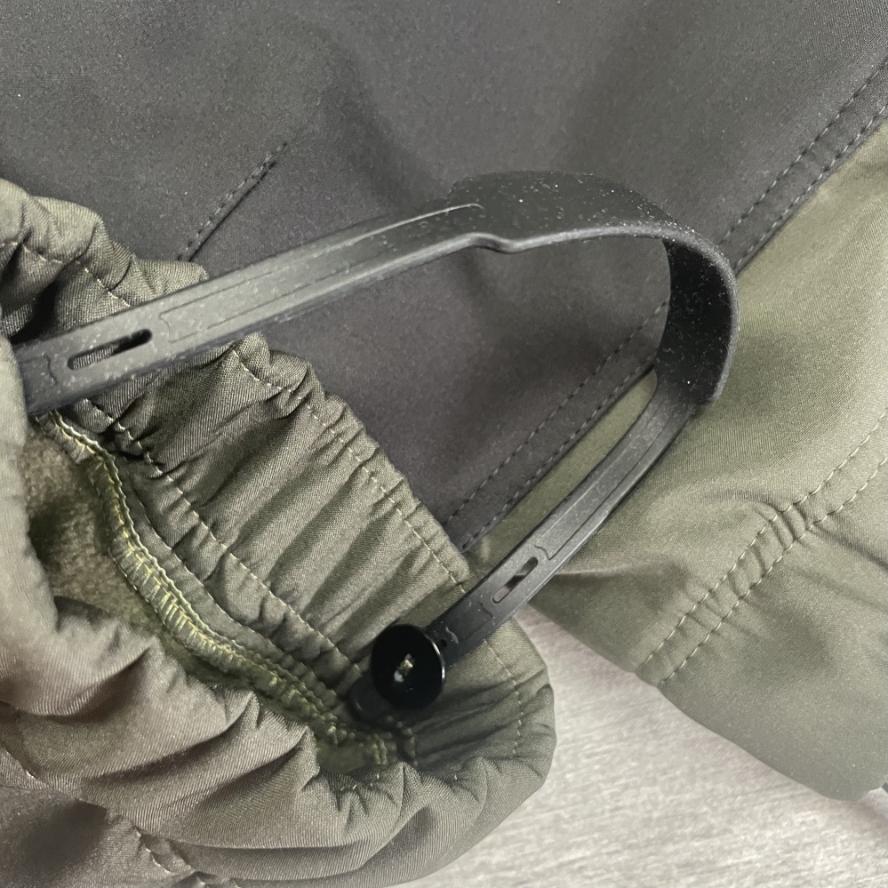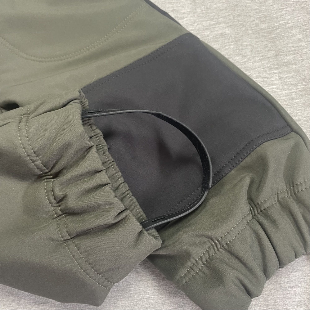 The bottom part of the overall has SILICONE boot elastics, the length of which can also be slightly adjusted with button.