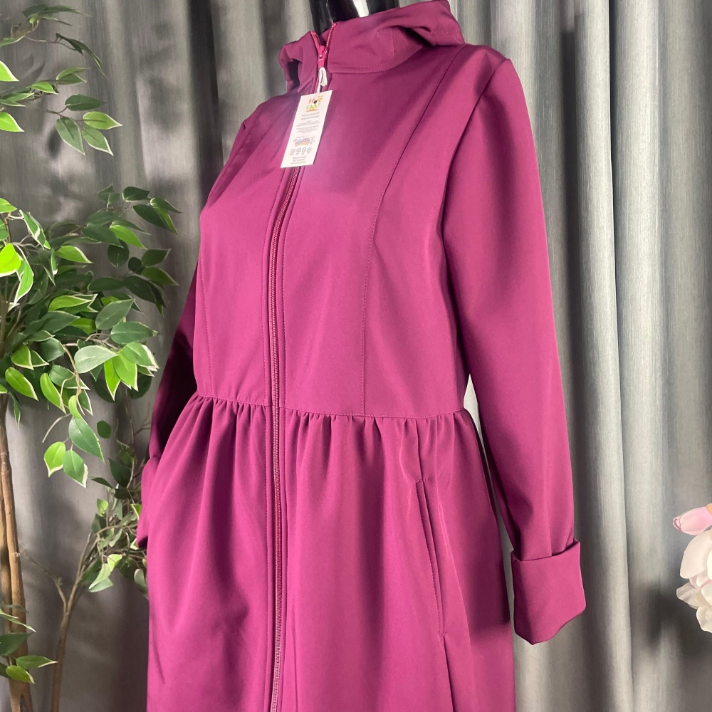 This woman Softshell rain coat is perfect for autumn and spring, when the air temperature is between 0 and + 20 degrees.