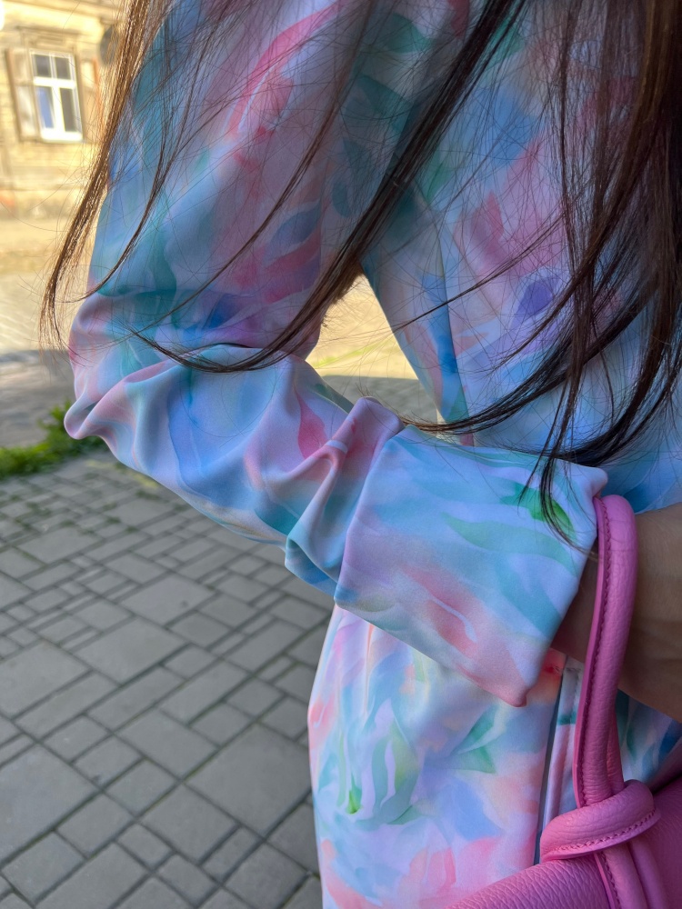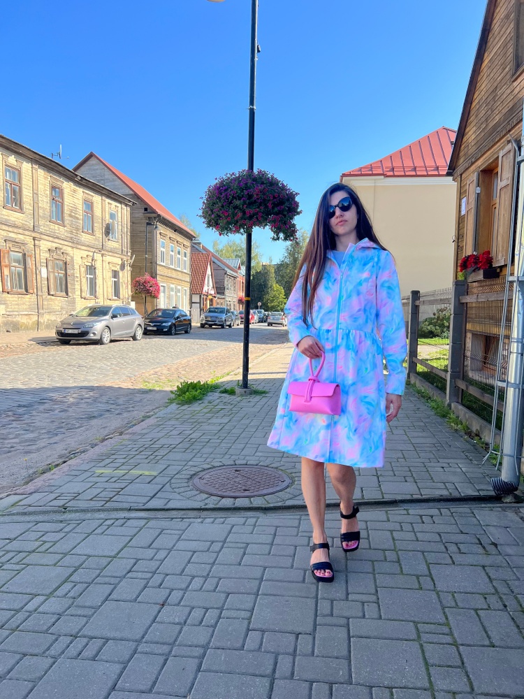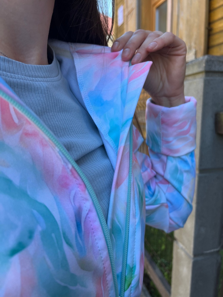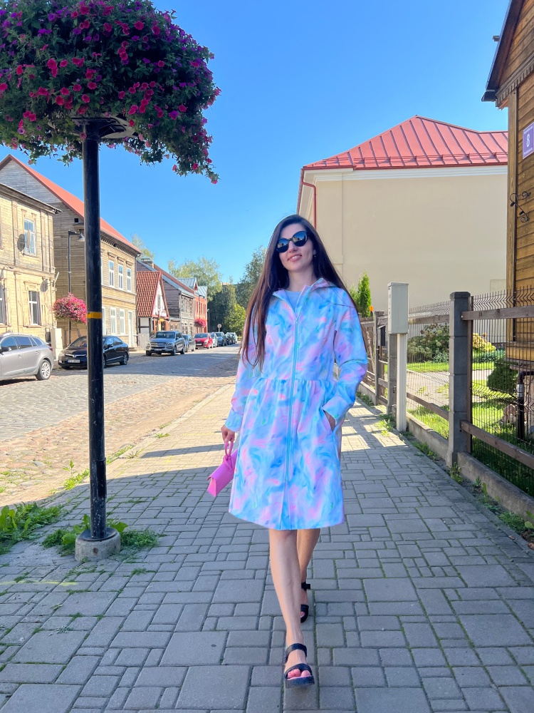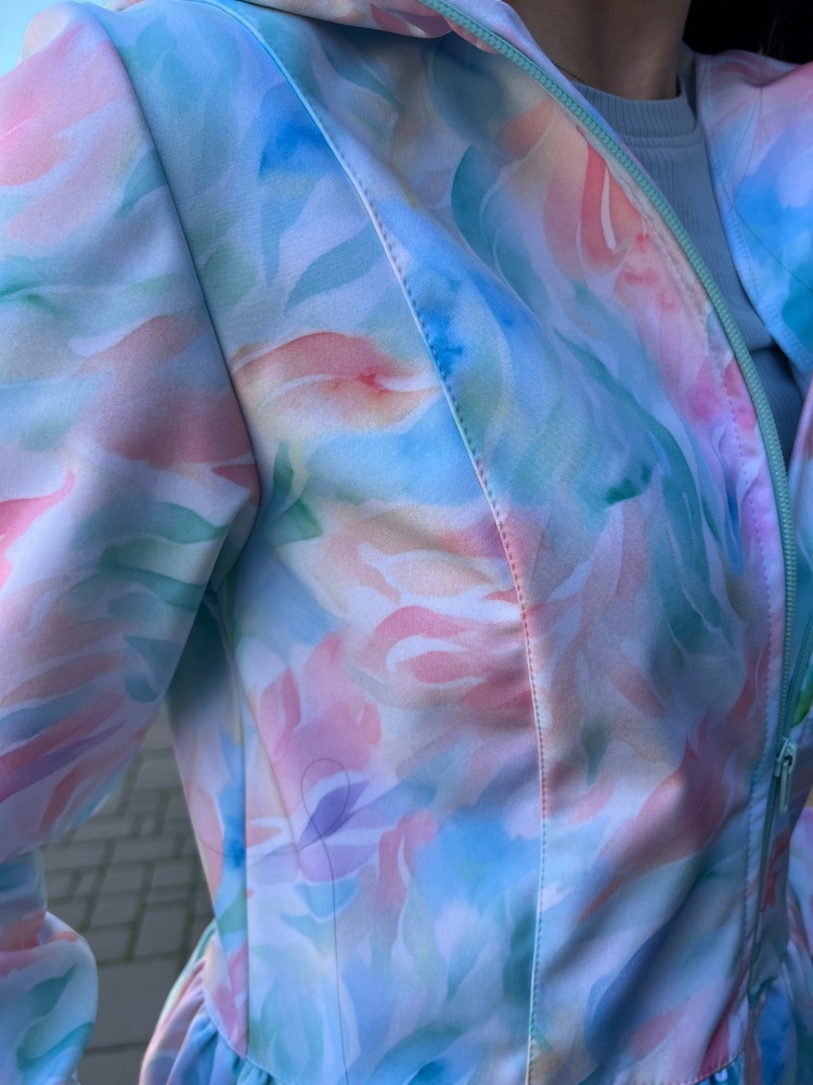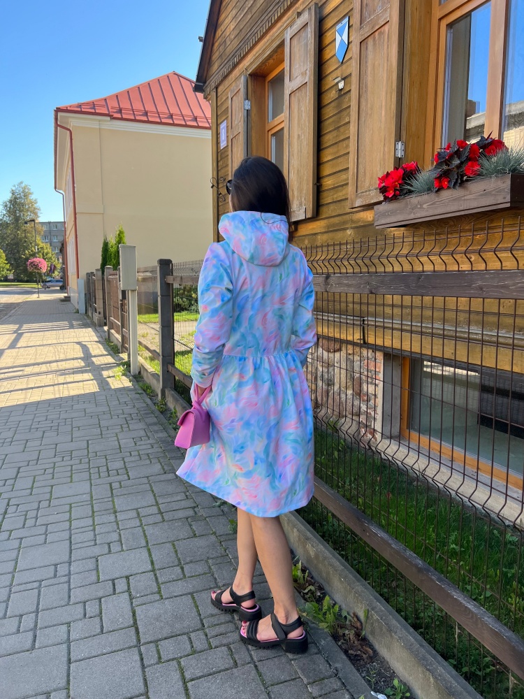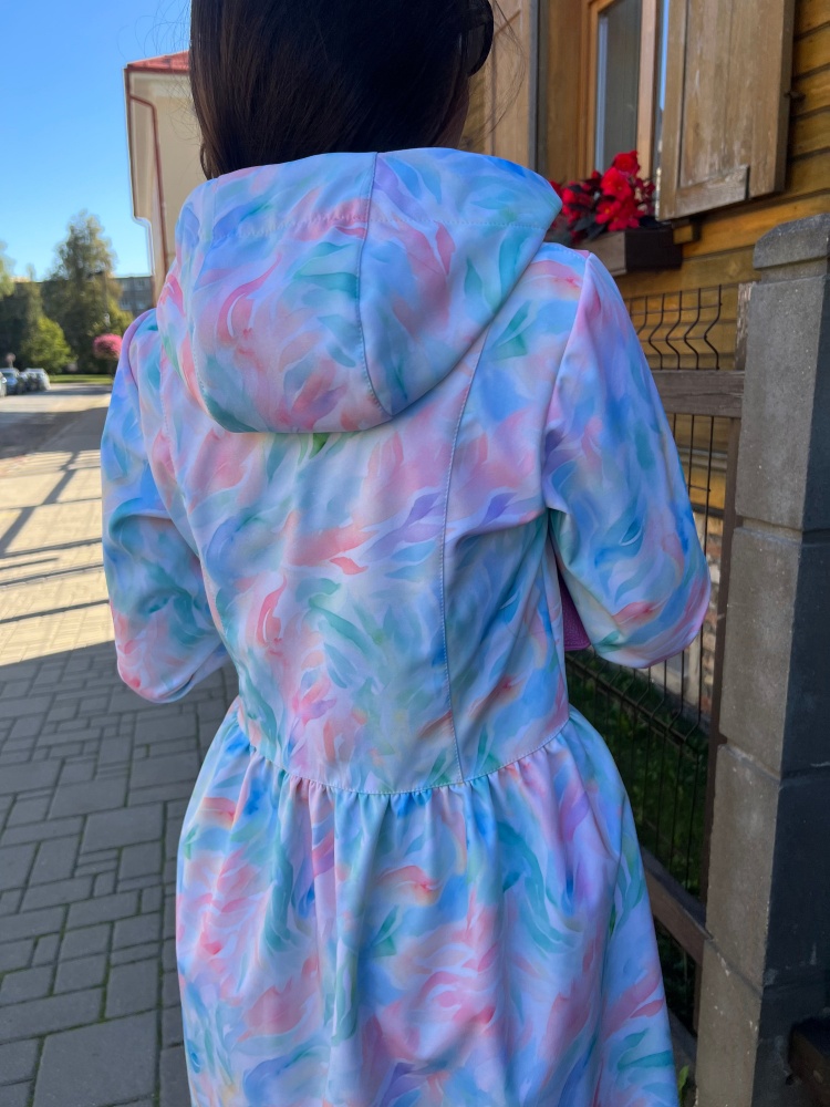 The coat has a hood, pockets, fold-down cuffs at the ends of the sleeves, so you can slightly adjust the length of the sleeves from 60 to 65/66 cm.