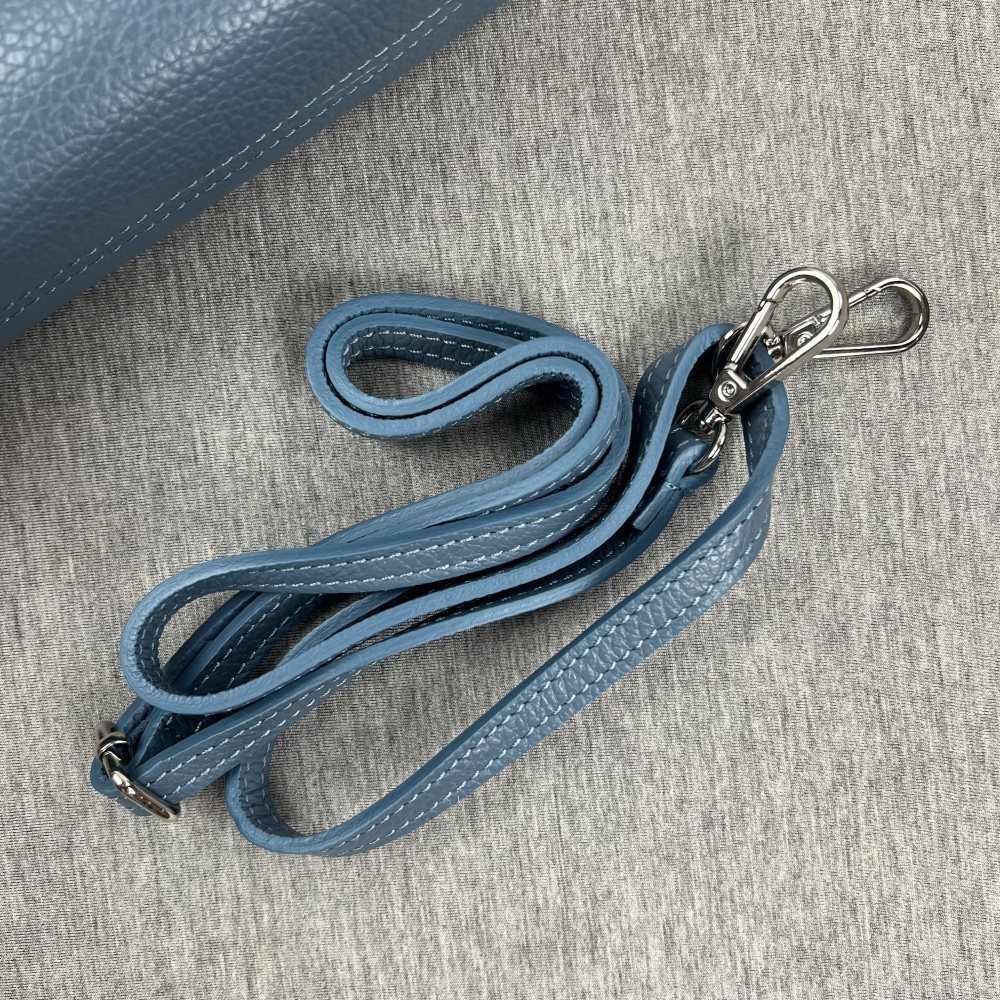 Aizdare: caurverama dekoratīvā siksniņa. Sudraba krāsas furnitūra.