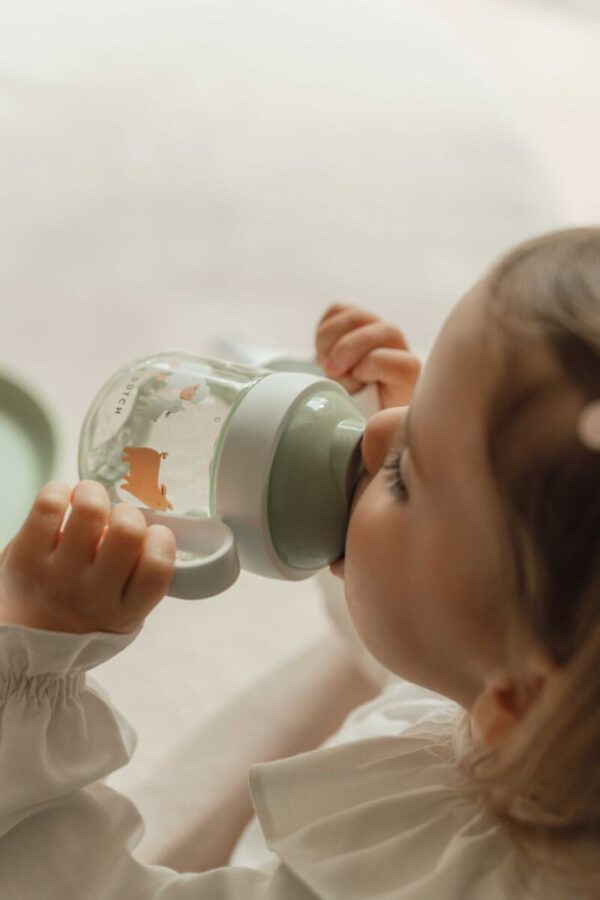 Dzeršanas snīpis ir ļoti īss, kas nodrošina veselīgāku mutes un zobu attīstību. Šai krūzītei ar pretizlīšanas funkciju ir dzeršanas snīpji abos uzgaļa sānos, tāpēc mazulim vienmēr viegli izdosies padzerties. Pēc lietošanas krūzīti var droši mazgāt trauku mazgājamajā mašīnā; protams, tā nesatur BPA. Lielie rokturīši garantē to, ka krūzīti ir viegli turēt.