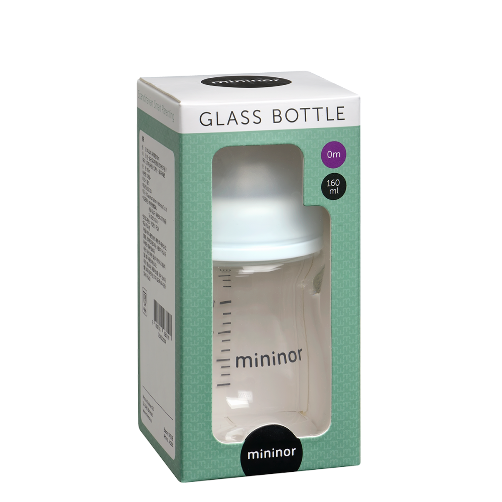 MININOR Barošanas pudele, stikla 160ml, 0m+