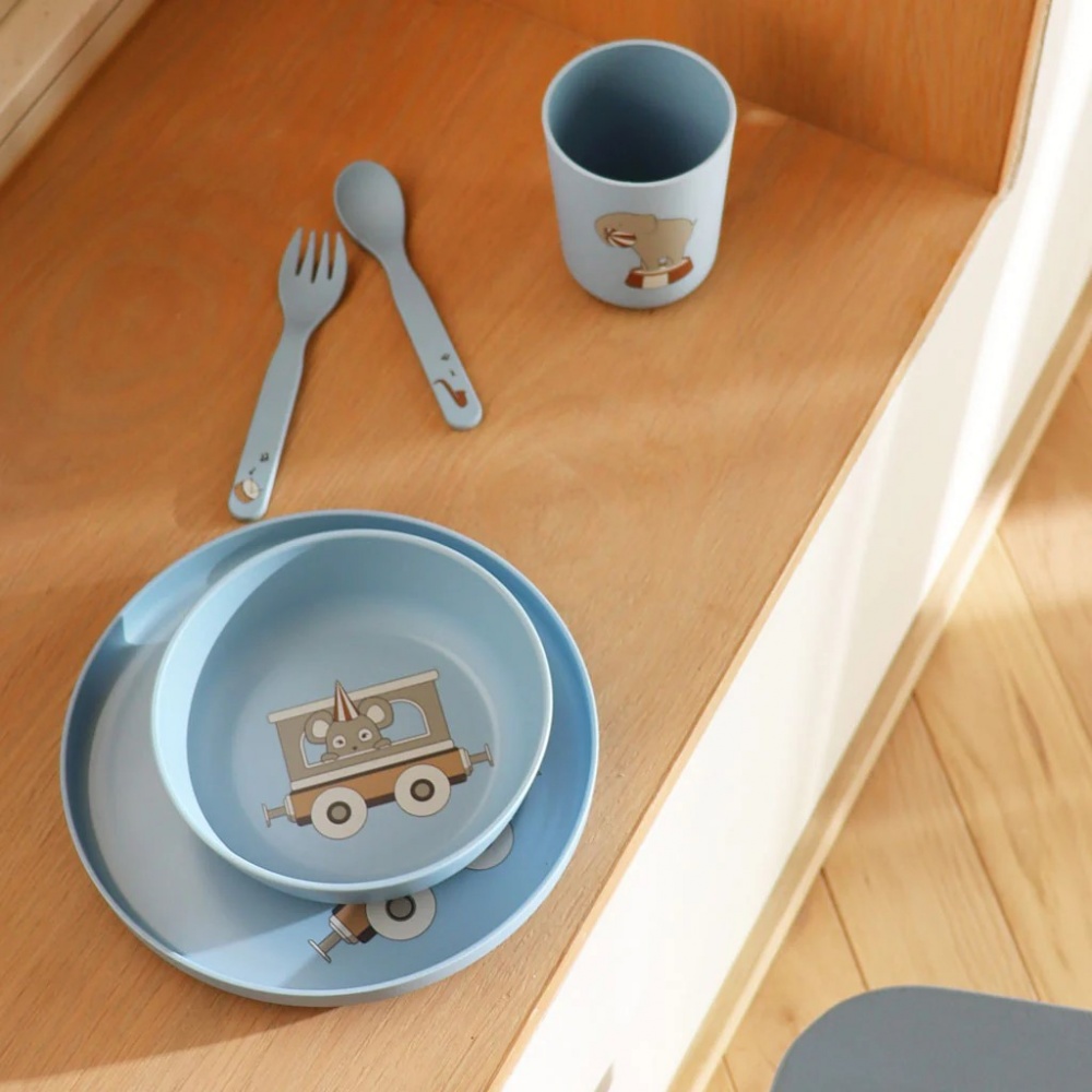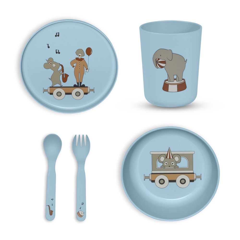 NUUROO trauku komplekts, šķīvis, bļodiņa, krūzīte un galda piederumi