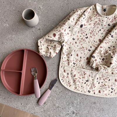 Lielisks pirmais šķīvis mazulim, kurš mācās pats ēst. Šķīvim ir piesūceknis, kas notur to vietā, samazinot trauka krišanas iespējamību laikā, kad mazulis mācās ēst patstāvīgi. Šķīvim ir 3 nodalījumi.