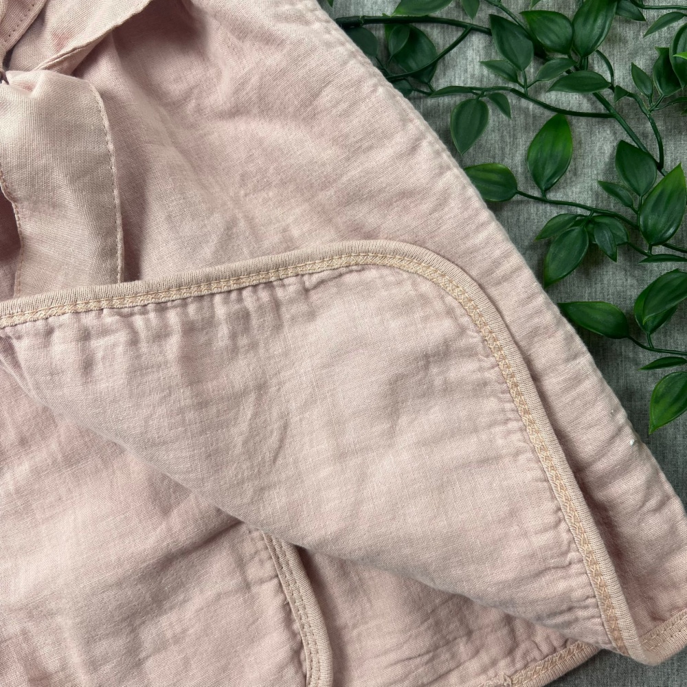 Divslāņu muslīna peldmētelis ir izgatavots no augstākās kvalitātes auduma, kas ir mīksts un elpojošs.