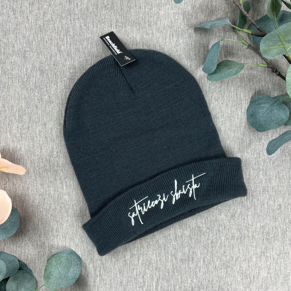 Adīta cepure sievietēm SATRIECOŠI SKAISTA, tumši pelēka