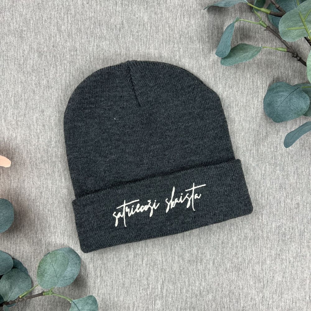 Adīta cepure sievietēm SATRIECOŠI SKAISTA, tumši pelēka