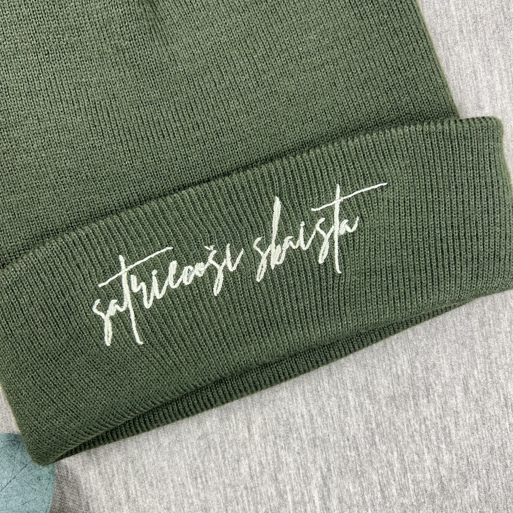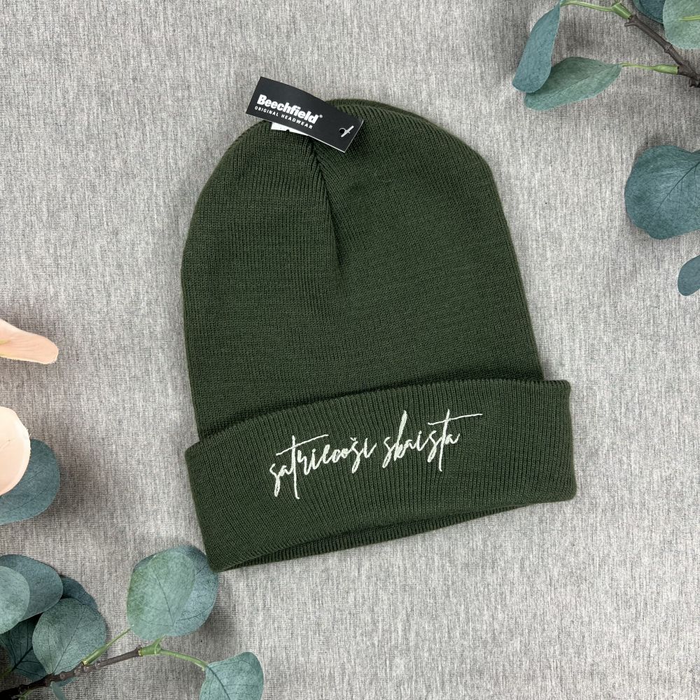 Adīta cepure sievietēm SATRIECOŠI SKAISTA, tumši zaļa