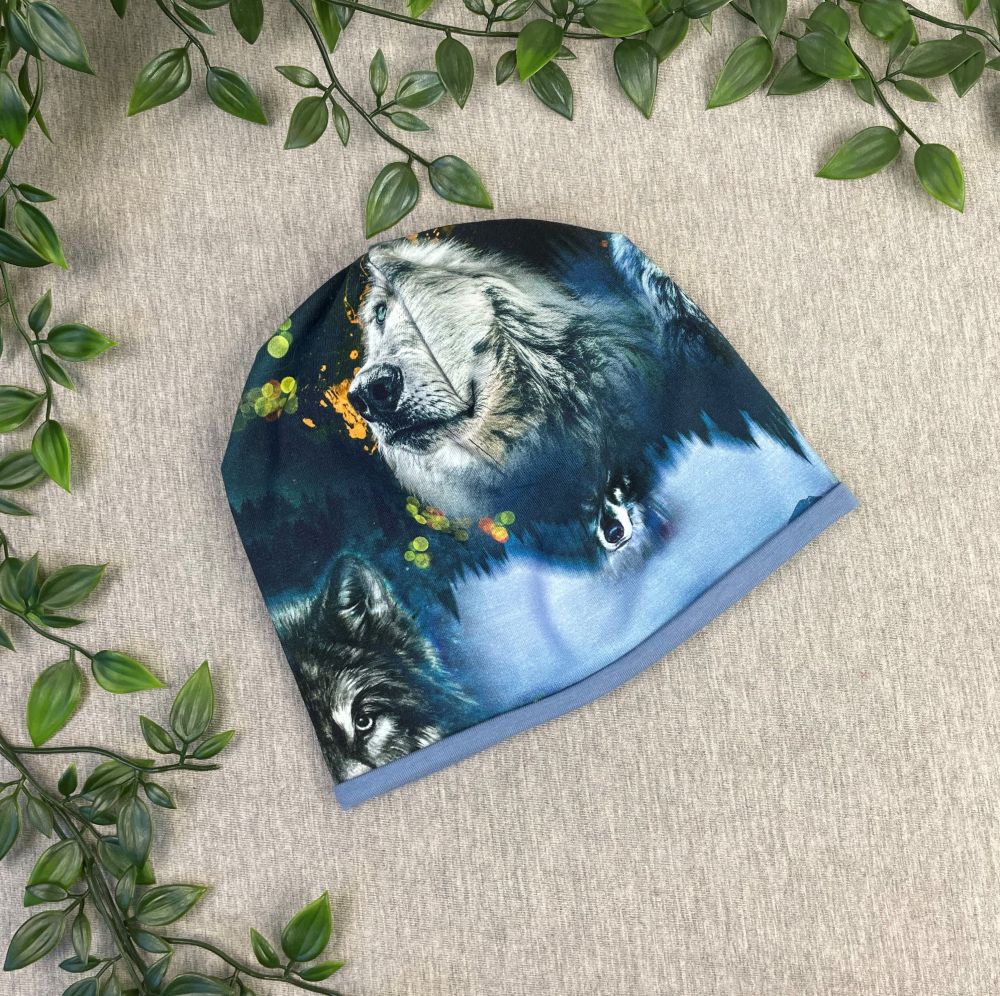 Dubultās kokvilnas trikotāžas bērnu cepure, Vilki