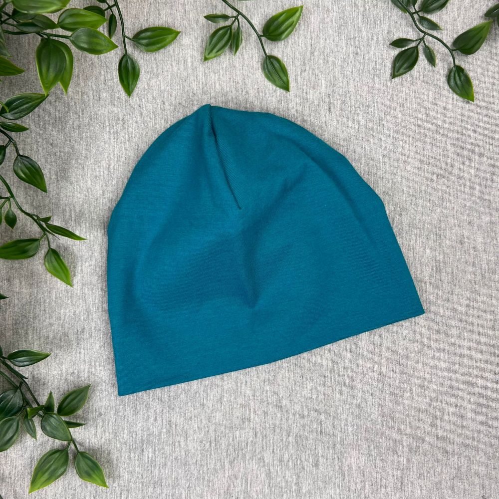 Dubultās kokvilnas trikotāžas bērnu cepure, Petrol