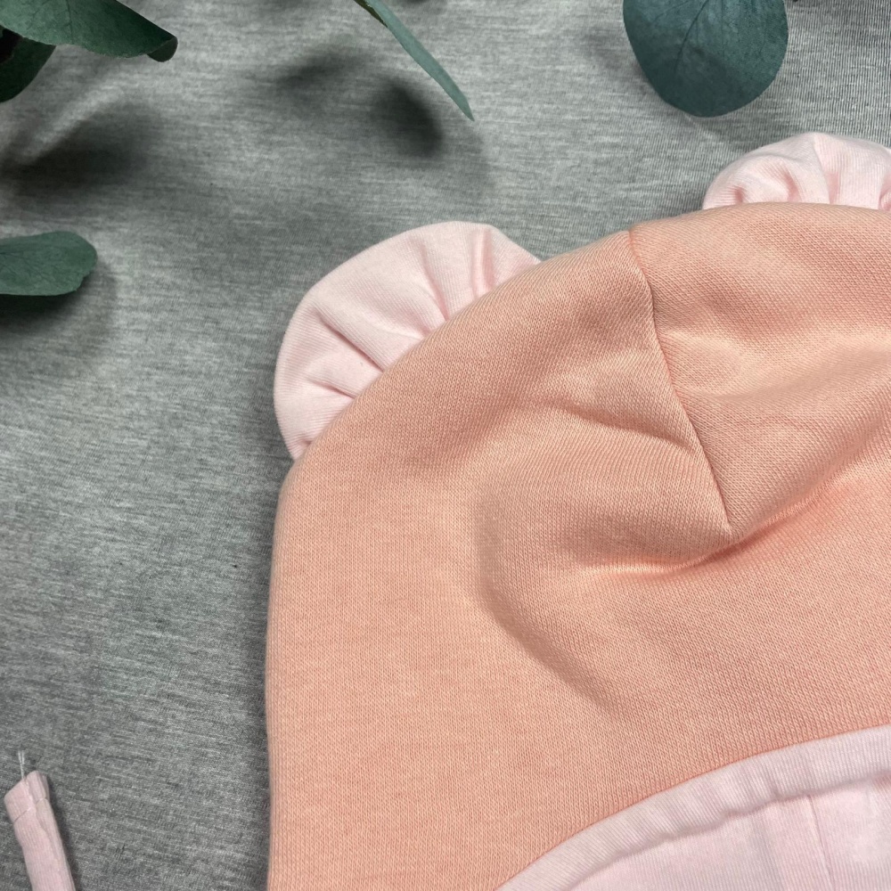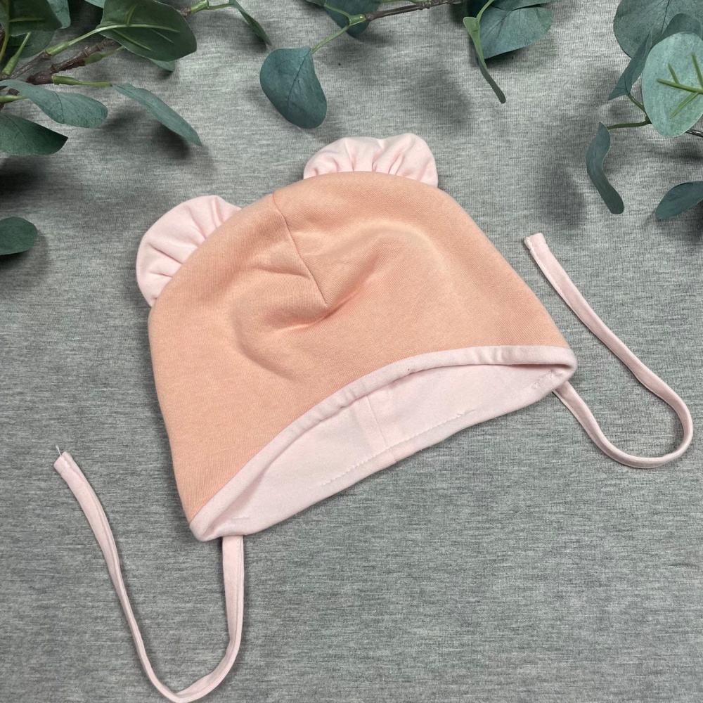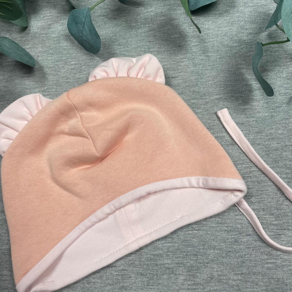 Kokvilna flīsa bērnu cepure ar kokvilnas trikotāžas oderi. Cepurīte sienama, ar volānaustiņām.