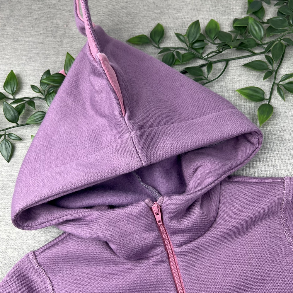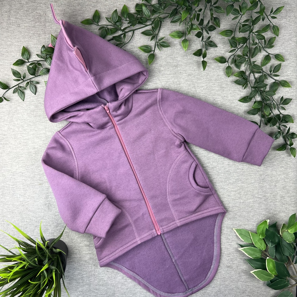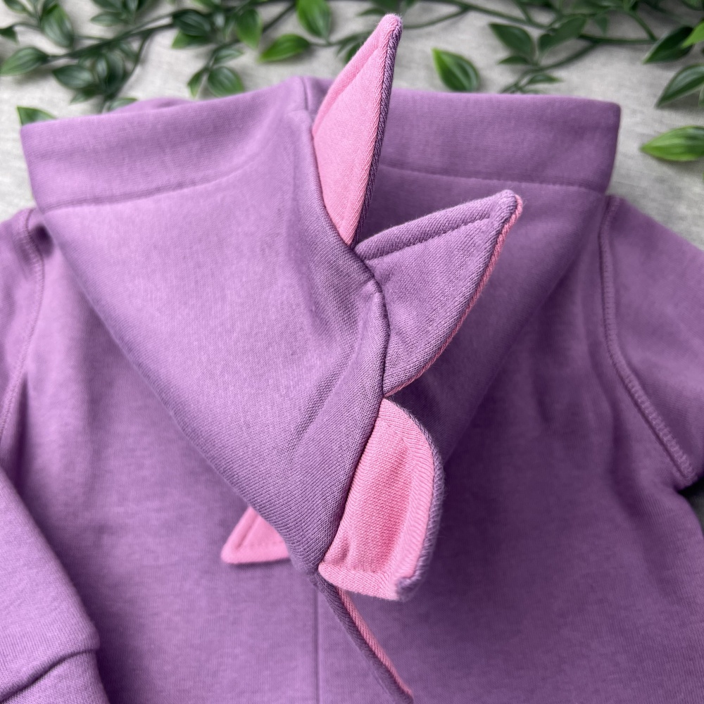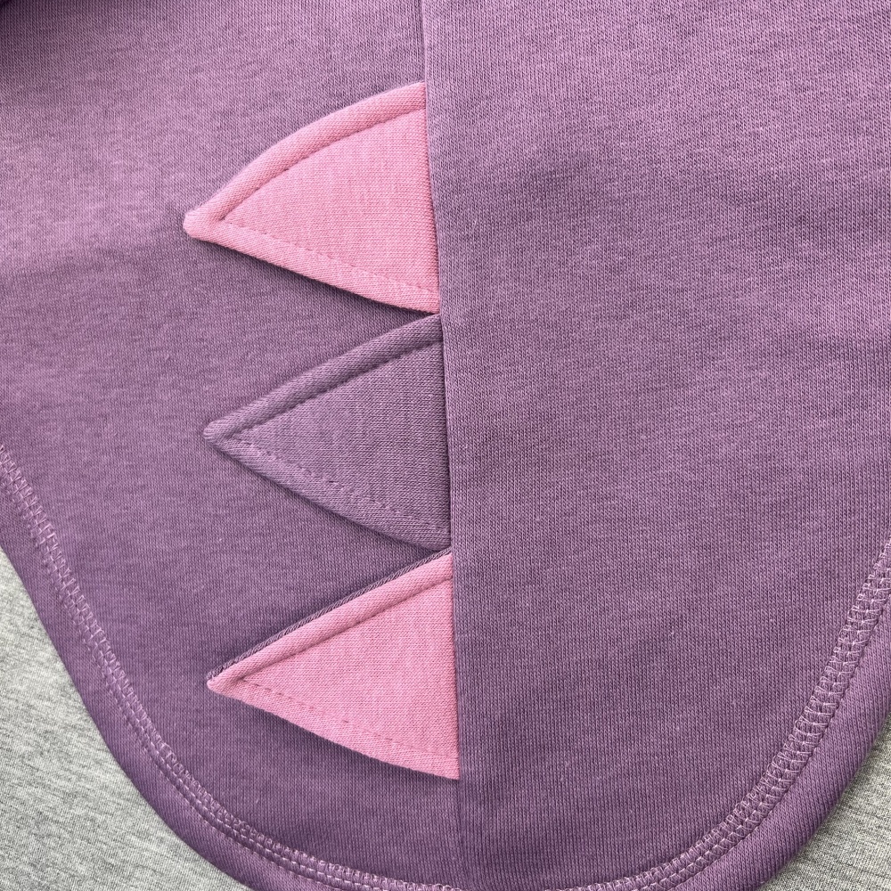 Kokvilnas flīsa bērnu jaka "Dinozaurs", lillā/rozā