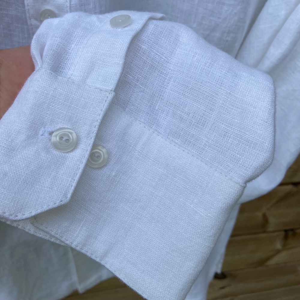 Vīriešu linu krekls ar pogām, garas piedurknes, BALTS
