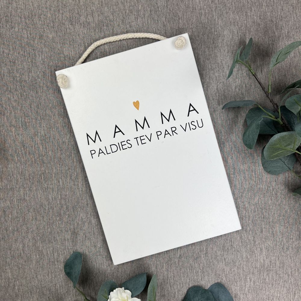 Koka dekors ar mīļu uzrakstu un dizainu - "MAMMA PALDIES TEV PAR VISU"