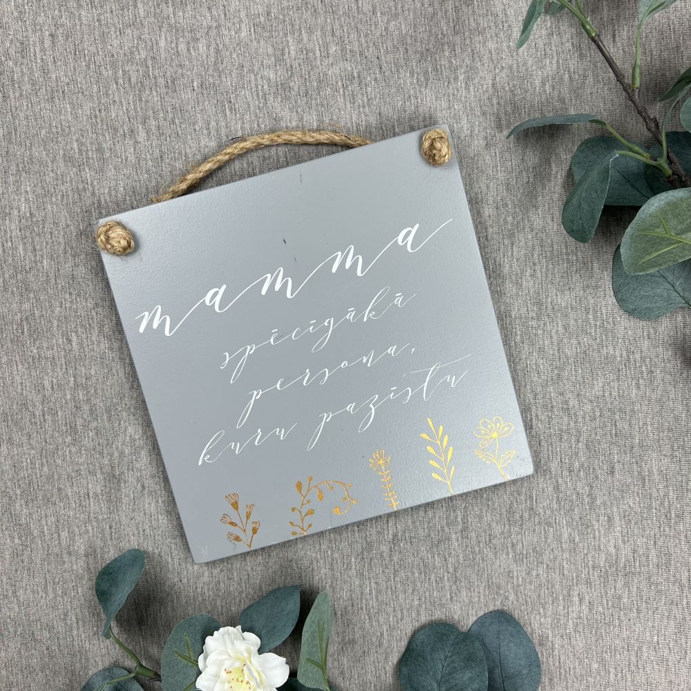 Koka dekors ar mīļu uzrakstu un dizainu -"MAMMA-spēcīgākā persona, kuru pazīstu"