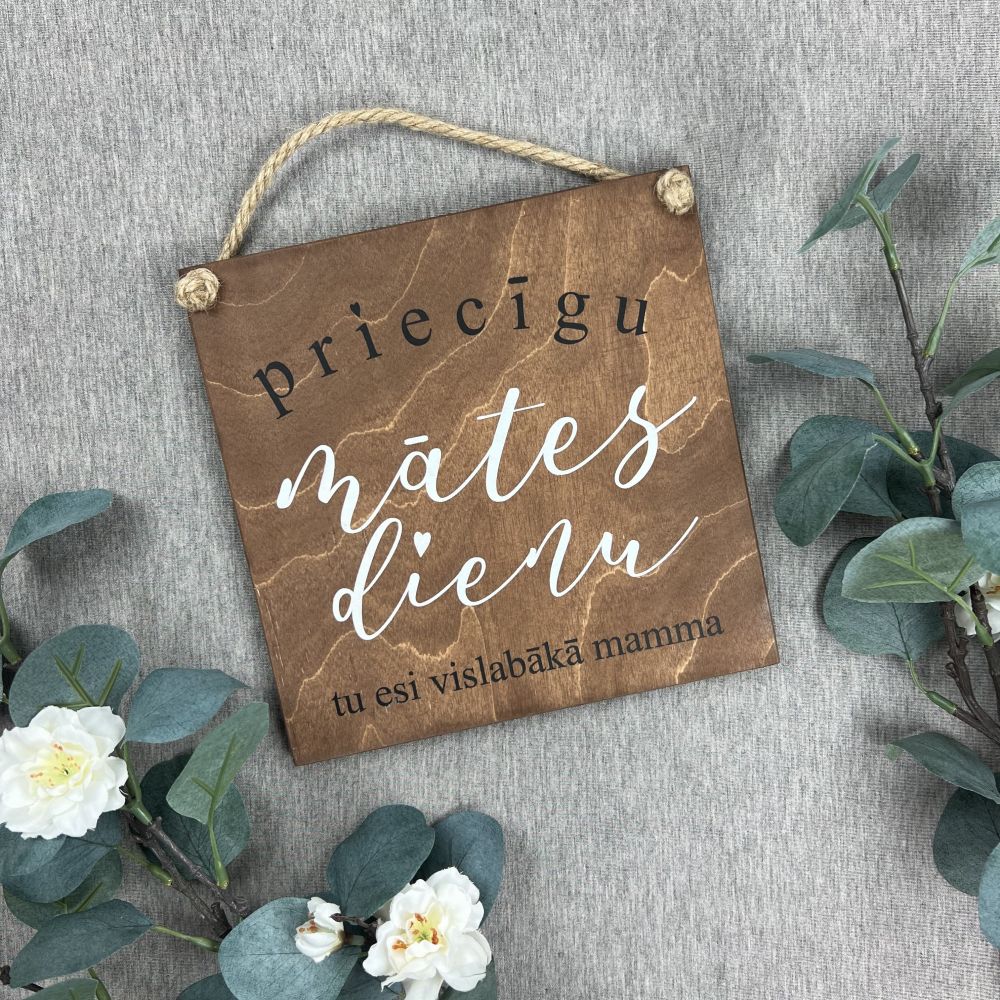 Koka dekors ar mīļu uzrakstu un dizainu - "Priecīgu mātes dienu. Tu esi vislabākā mamma"