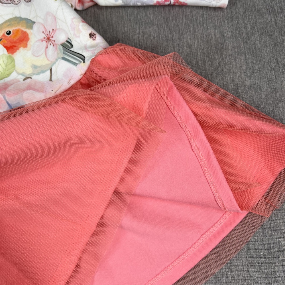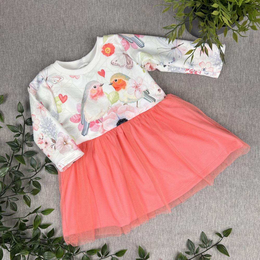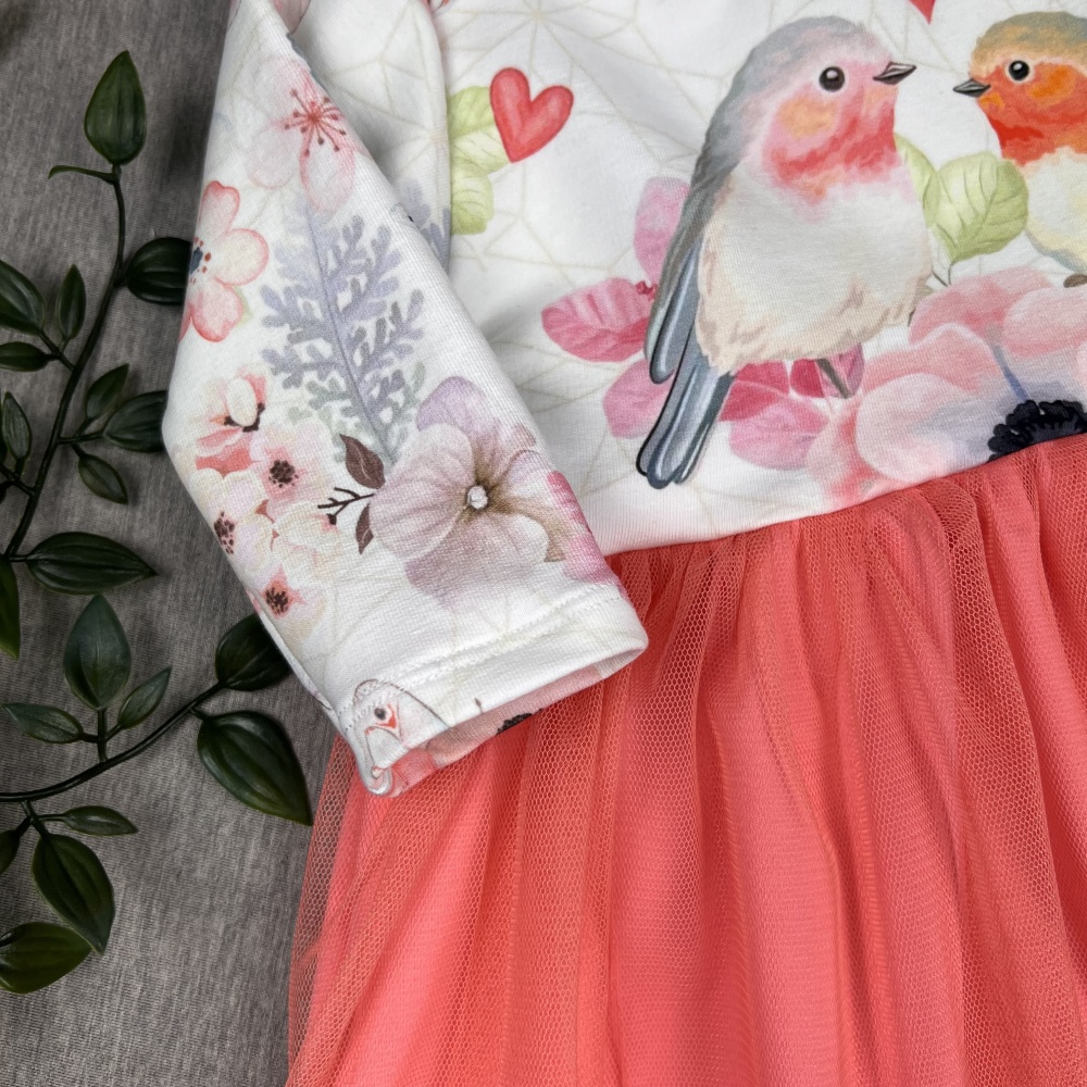 Labo Darbu fabrika eko kokvilnas trikotāžas kleita Putniņi/korallis