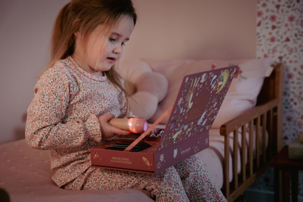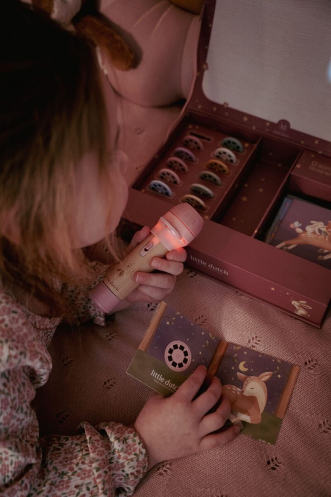 Projektora lukturītim ir izturīgs koka rokturis un tas darbojas ar baterijām, tāpēc to var ņemt līdzi jebkur. Pēc stāsta noklausīšanās lukturīti un visus piederumus var ērti uzglabāt skaistā uzglabāšanas kastē. Lieliski piemērots bērniem, kuriem patīk atklāt un piedzīvot stāstus.