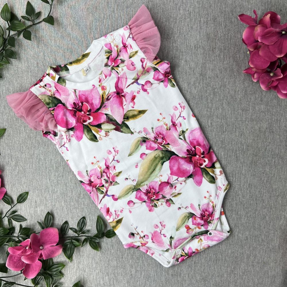 Organiskās kokvilnas bodijs, Rozā ziedi