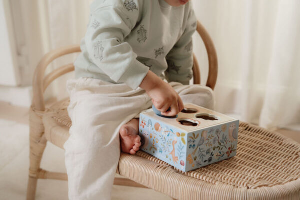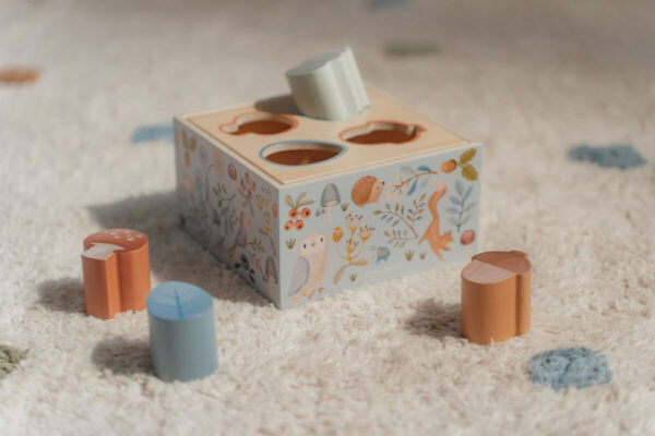 Šis koka formu šķirotājs ir radoša šķirošanas spēle, kas māca mazulim atpazīt un saskaņot formas un krāsas, kā arī precizē roku un acu koordināciju. Kaste ir izgatavota no izturīga koka un ilustrēta ar jauku ainu no Meža draugiem.
