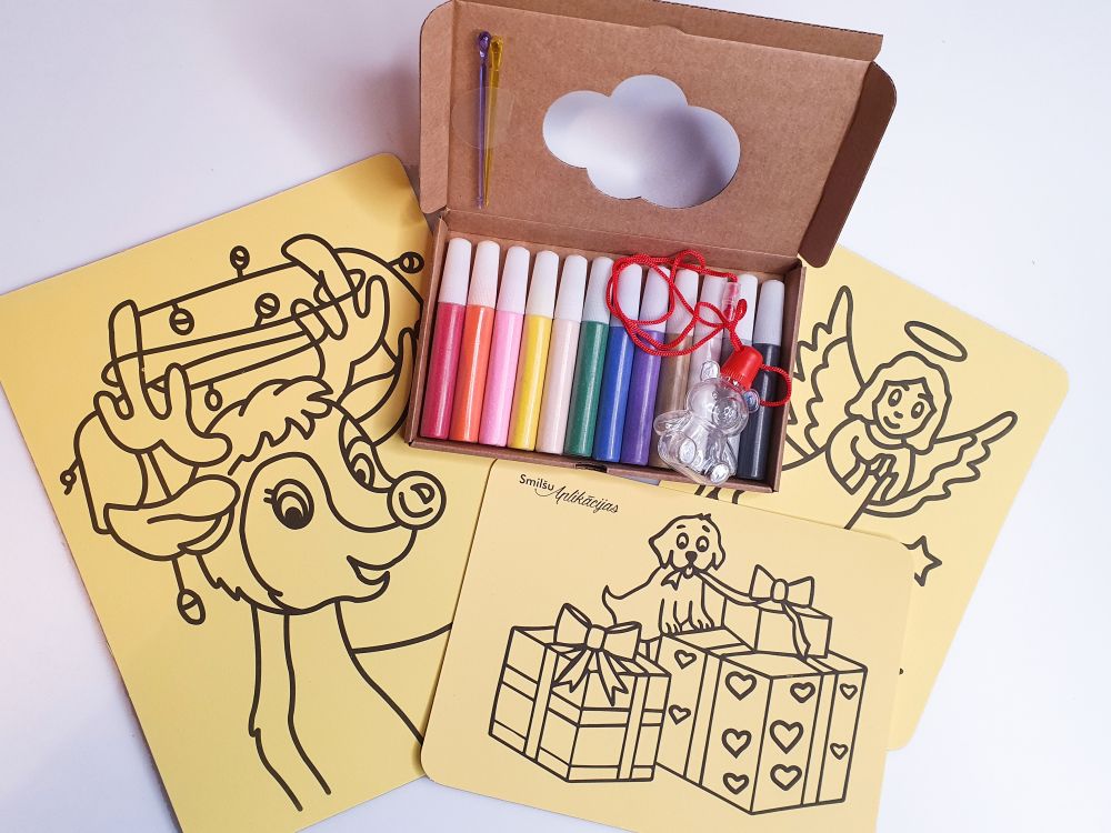 *3 izkrāsojami Ziemassvētku attēli: 1 lielais (izmērs A4) un 2 mazie (izmērs A5),