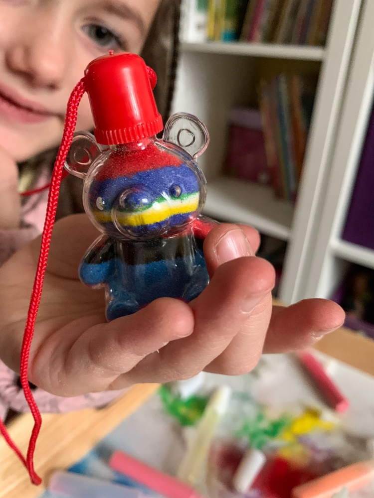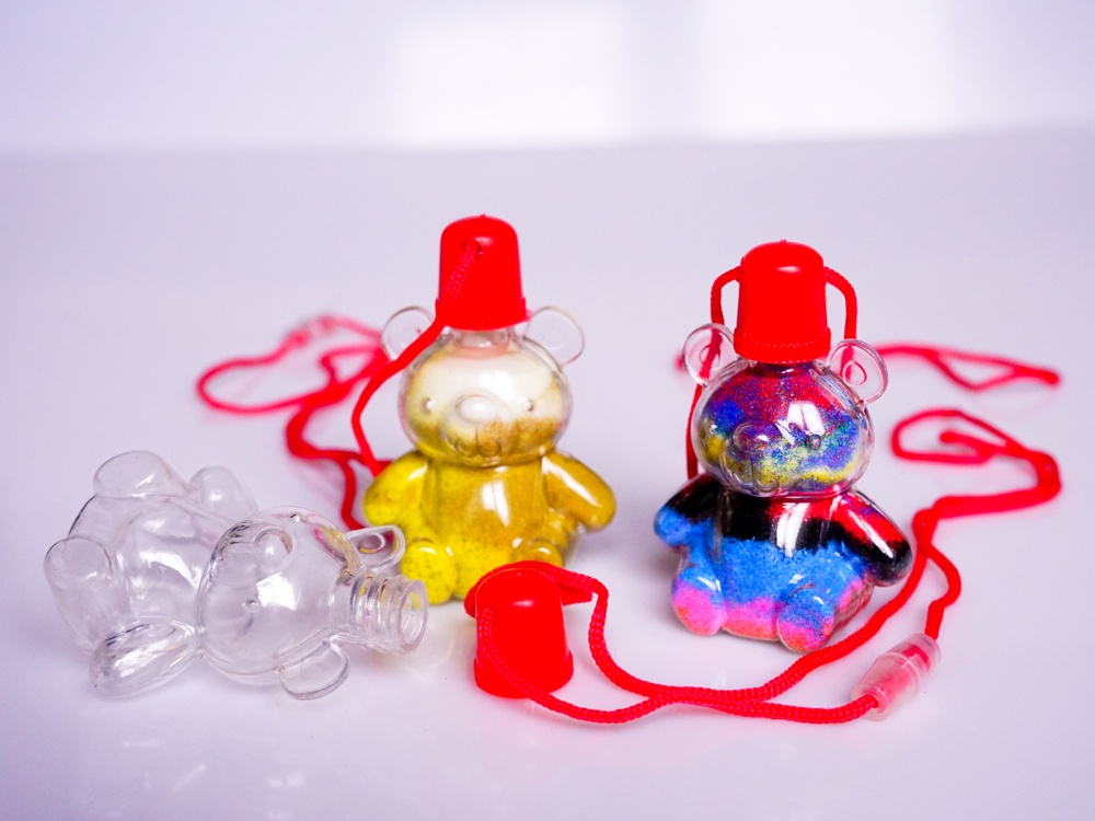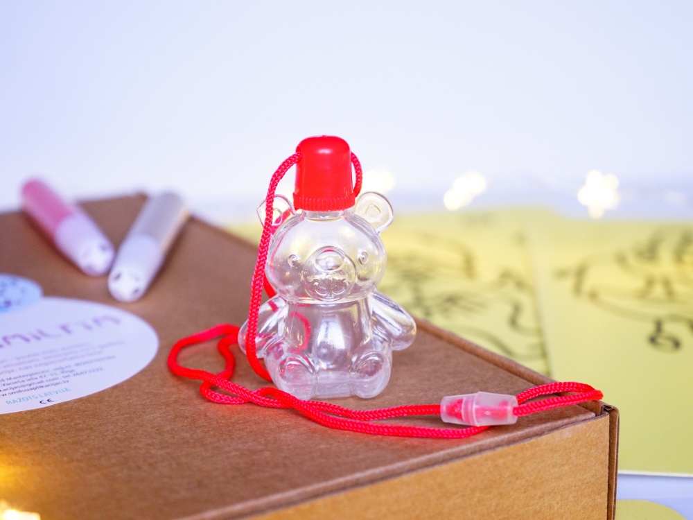 *kā arī īpašs pārsteigums - smilšu pudelīte lāča formā, kuru var sapildīt ar krāsainām smiltīm (tilpums ~50 ml).