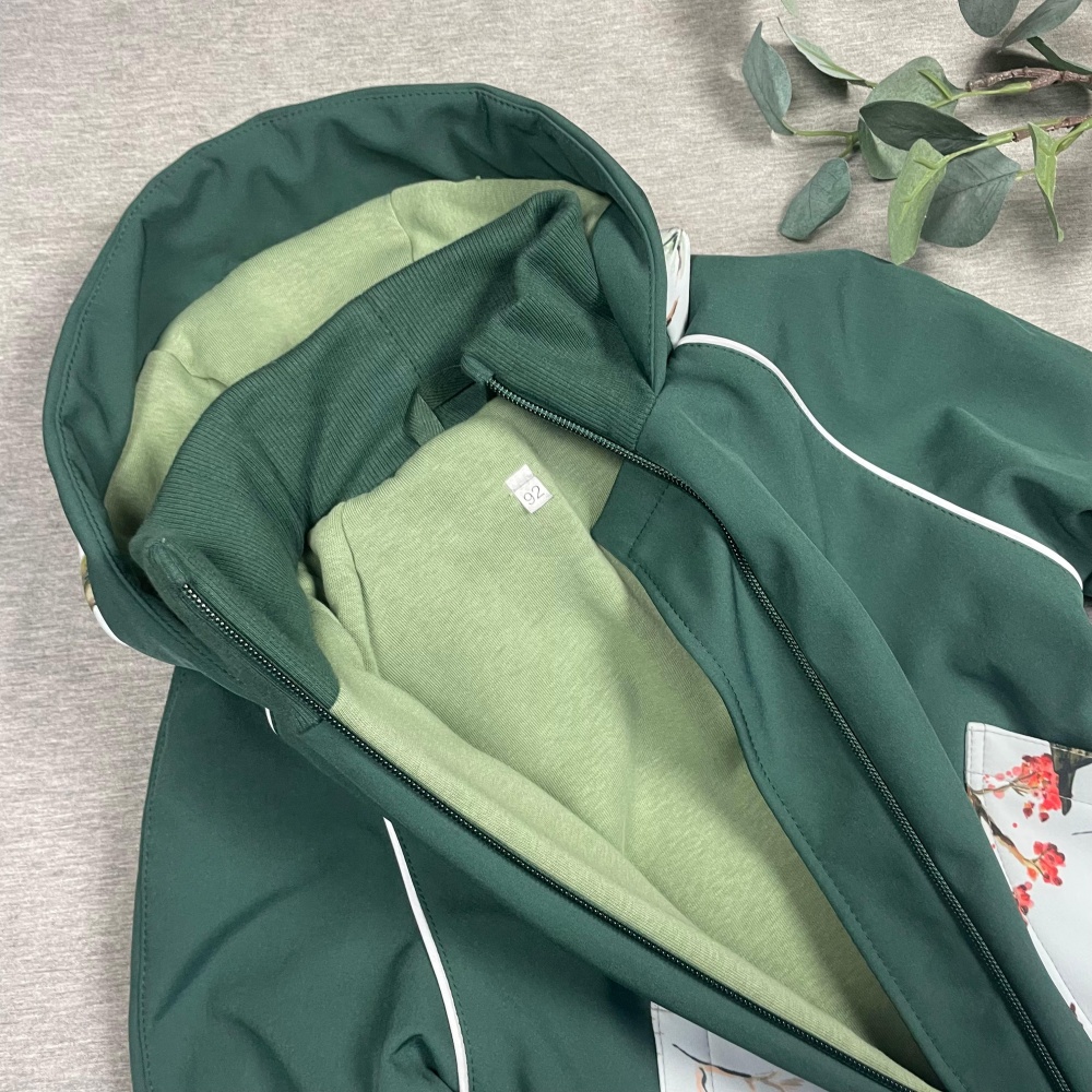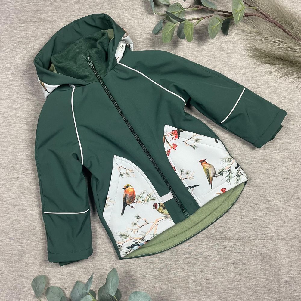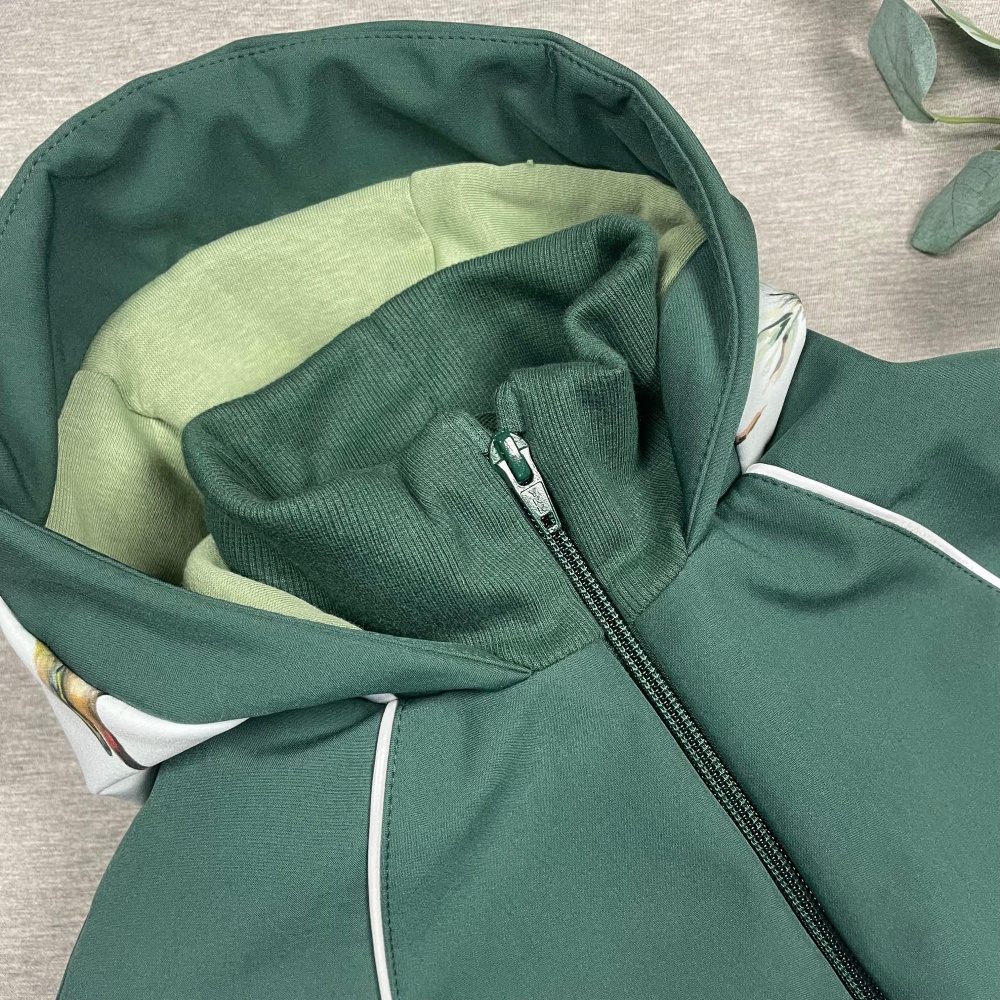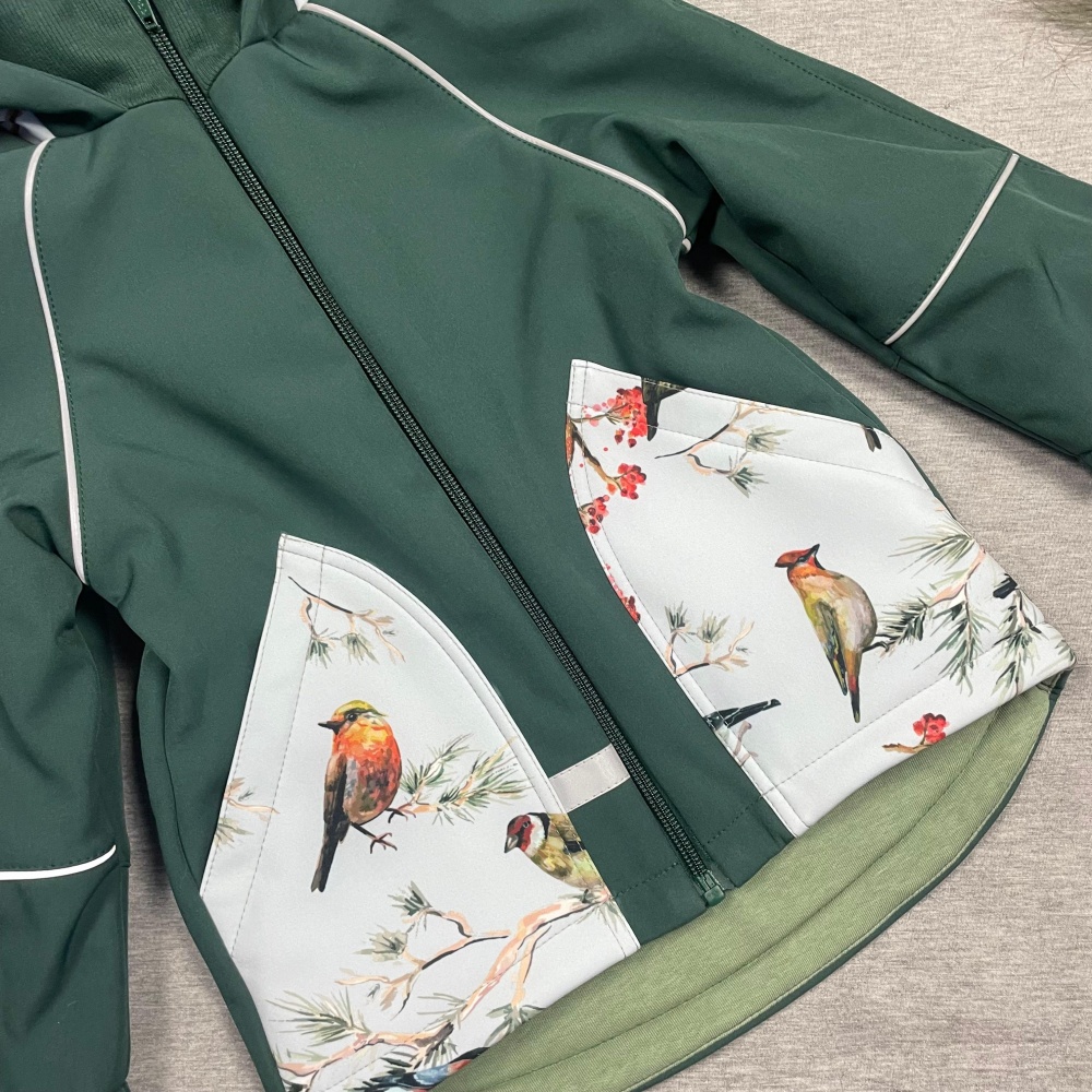 Softshell vējjaka ar kokvilnas flīsa oderi, TUMŠZAĻŠ/PUTNIŅI