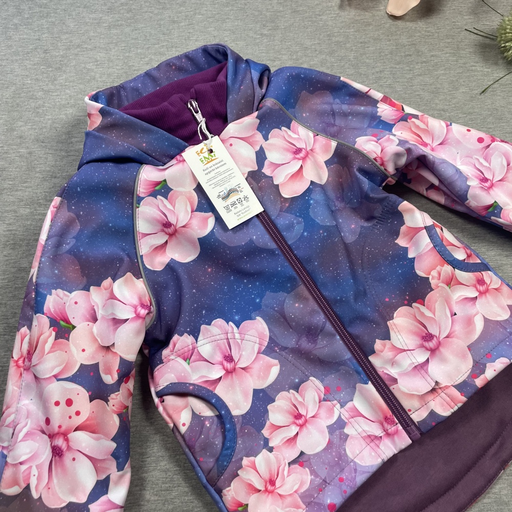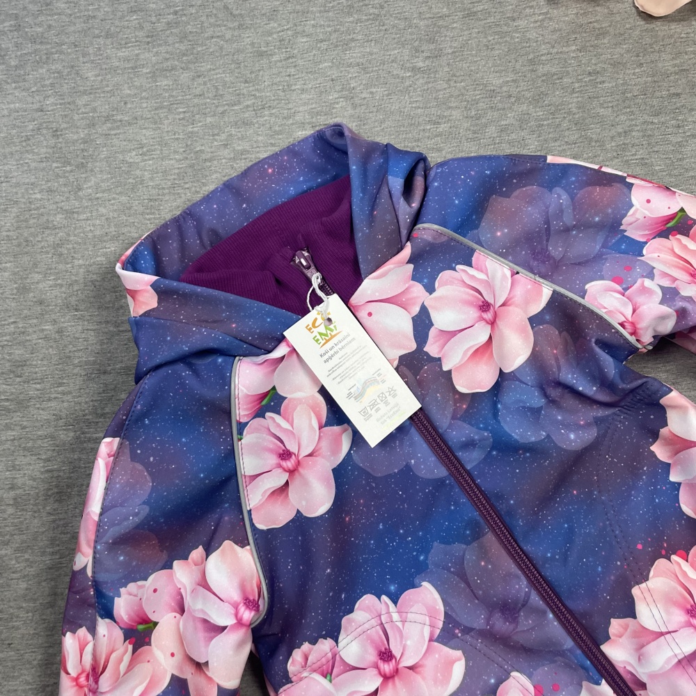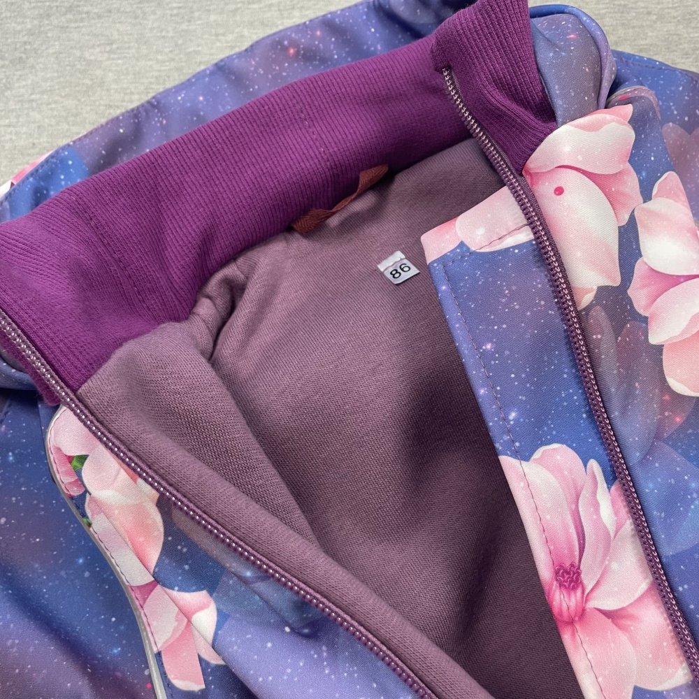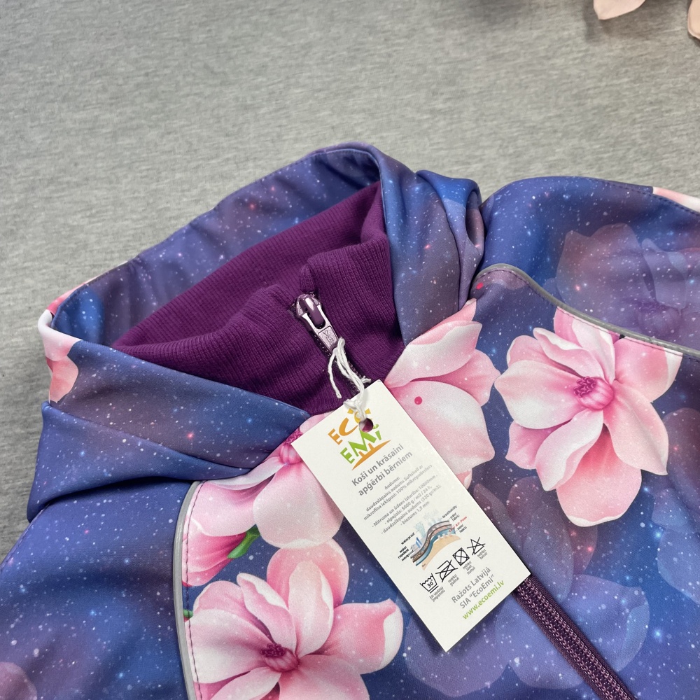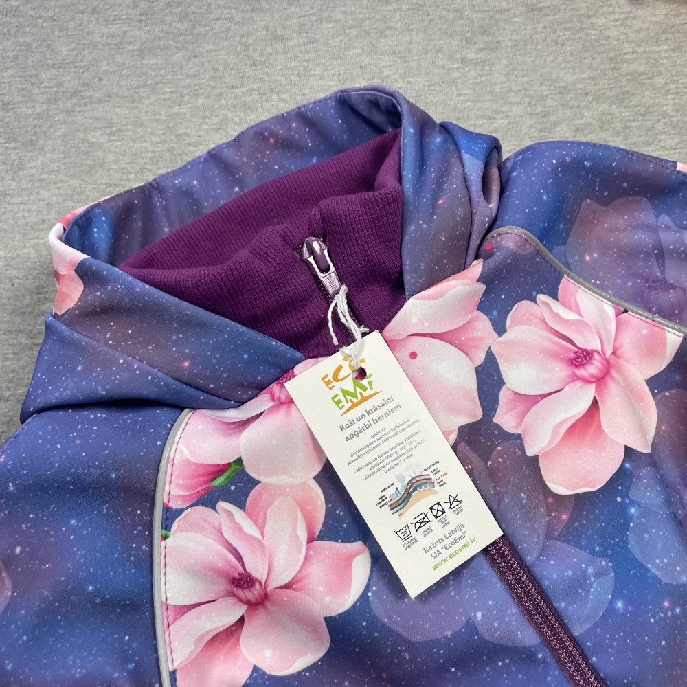 Softshell vējjaka ar kokvilnas flīsa oderi, ZIEDI uz zila