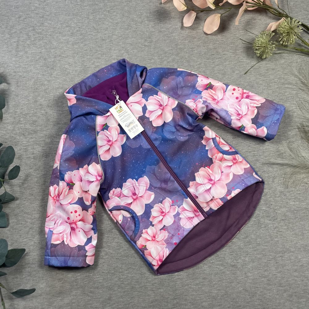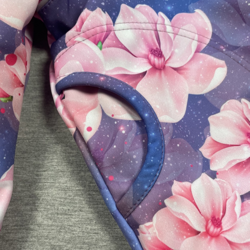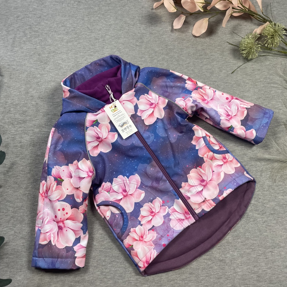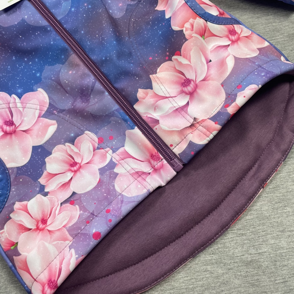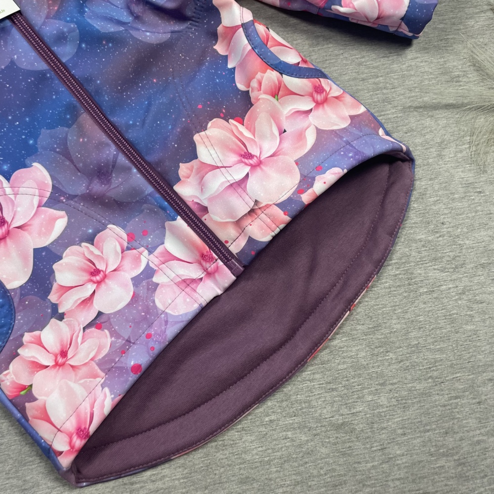 Softshell vējjaka ar kokvilnas flīsa oderi, ZIEDI uz zila