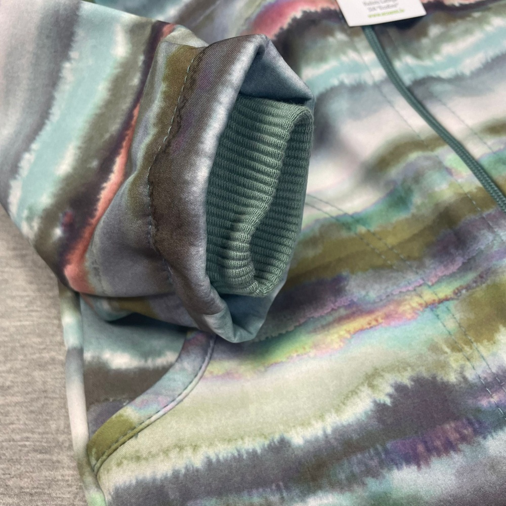 Daudzslāņains audums Softshell ar mikroflīsa iekšpusi: 94% mikropoliesters, 6% poliamīds.