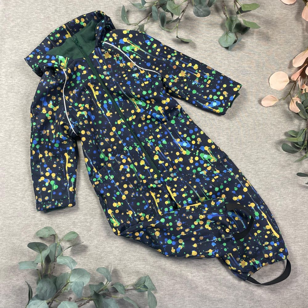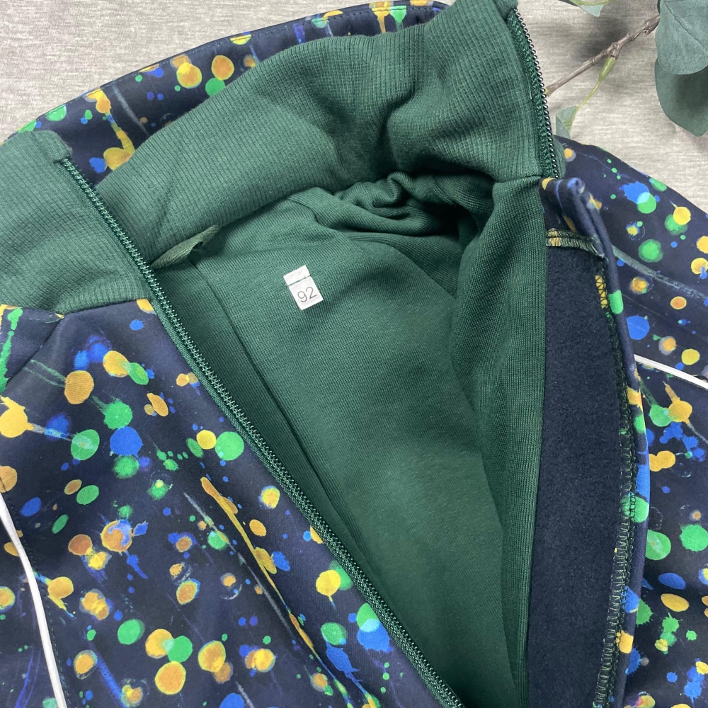 Softshell apģērbiem izmēru iesakam izvēlēties atbilstoši bērniņa garuma centimetriem - cik cm garš bērniņš, tādu izmēru izvēlēties, jo visi apģērbi ir jau ar rezervīti. T.i., piemēram, ja bērniņa garums ir 84 cm, tad iesakam izvēlēties izmēru 86/92 - apģērba pamatizmērs ir 86, bet paredzēts, ka tas kalpos līdz pat 92 izmēram.