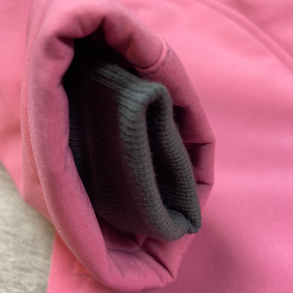 Vēju un mitrumu necaurlaidīgs ārējais Softshell materiāls, kam ir laba gaisa caurlaidība.