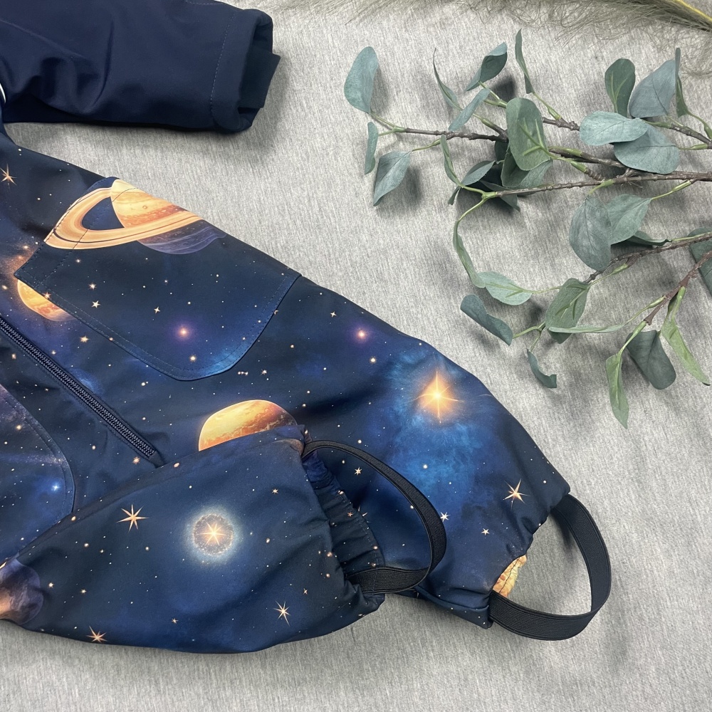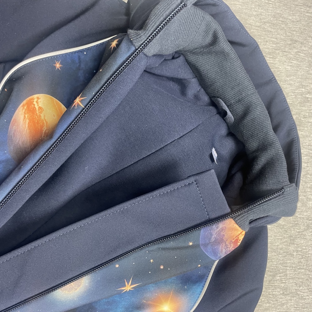 Softshell apģērbiem izmēru iesakam izvēlēties atbilstoši bērniņa garuma centimetriem - cik cm garš bērniņš, tādu izmēru izvēlēties, jo visi apģērbi ir jau ar rezervīti. T.i., piemēram, ja bērniņa garums ir 84 cm, tad iesakam izvēlēties izmēru 86/92 - apģērba pamatizmērs ir 86, bet paredzēts, ka tas kalpos līdz pat 92 izmēram.