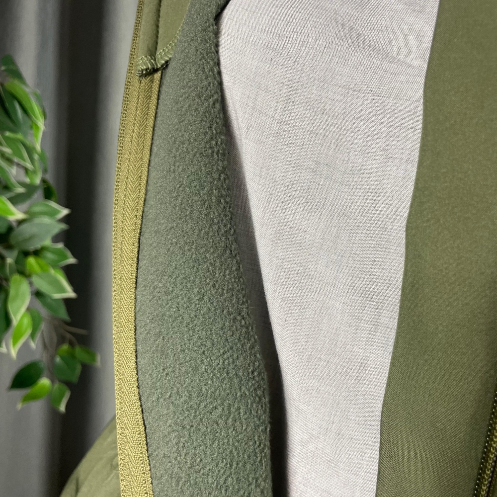 Vēju un mitrumu necaurlaidīgs Softshell materiāls ar flīsa oderīti iekšpusē, būs patīkams uz tausti no iekšpuses.